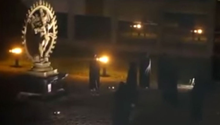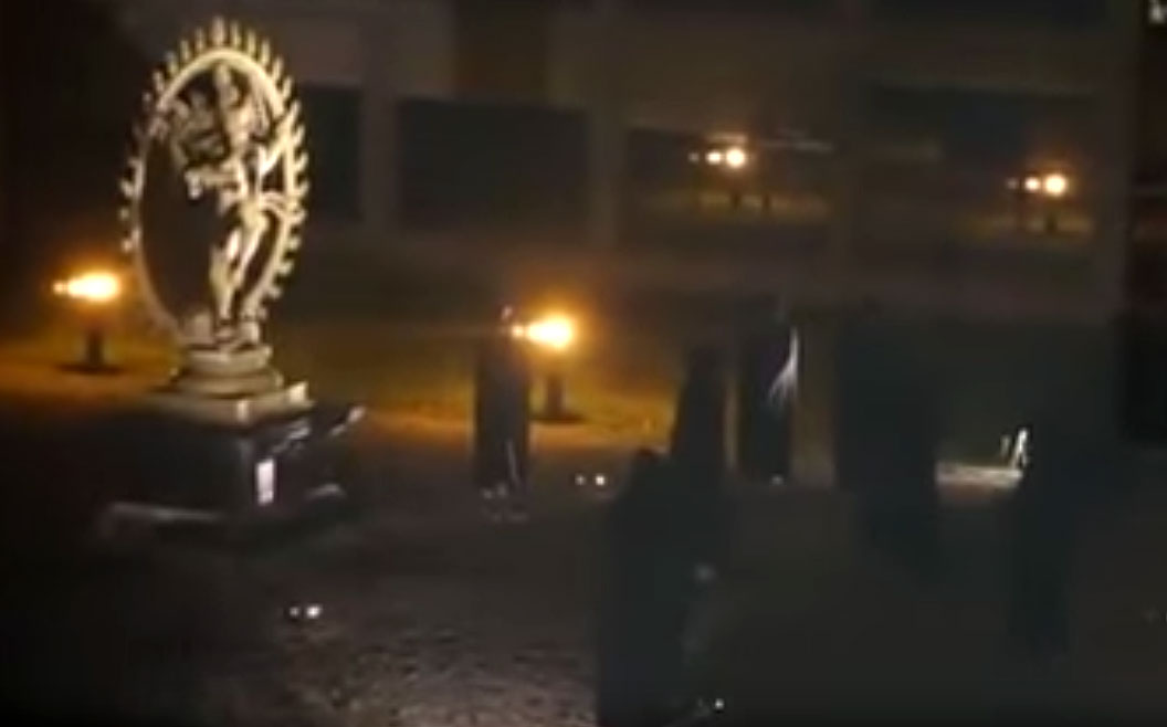 Странный ролик снят из окна одного из корпусов расположенного в Женеве научного центра. Как только один из участников "сатанинской мессы" поднимает над лежащей на земле женщиной руку с ножом, оператор начинает громко ругаться и от страха мечется по комнате.