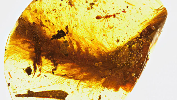 Обнаружен оперенный хвост динозавра, много лет назад угодивший в янтарную ловушку